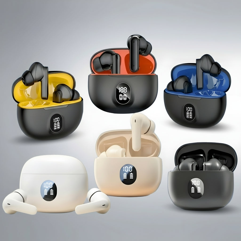 TWS Bluetooth 5.3 Wireless Earbuds with LED Display – ENC Noise Cancellation, HiFi Stereo Sound, Touch Control – Black & White