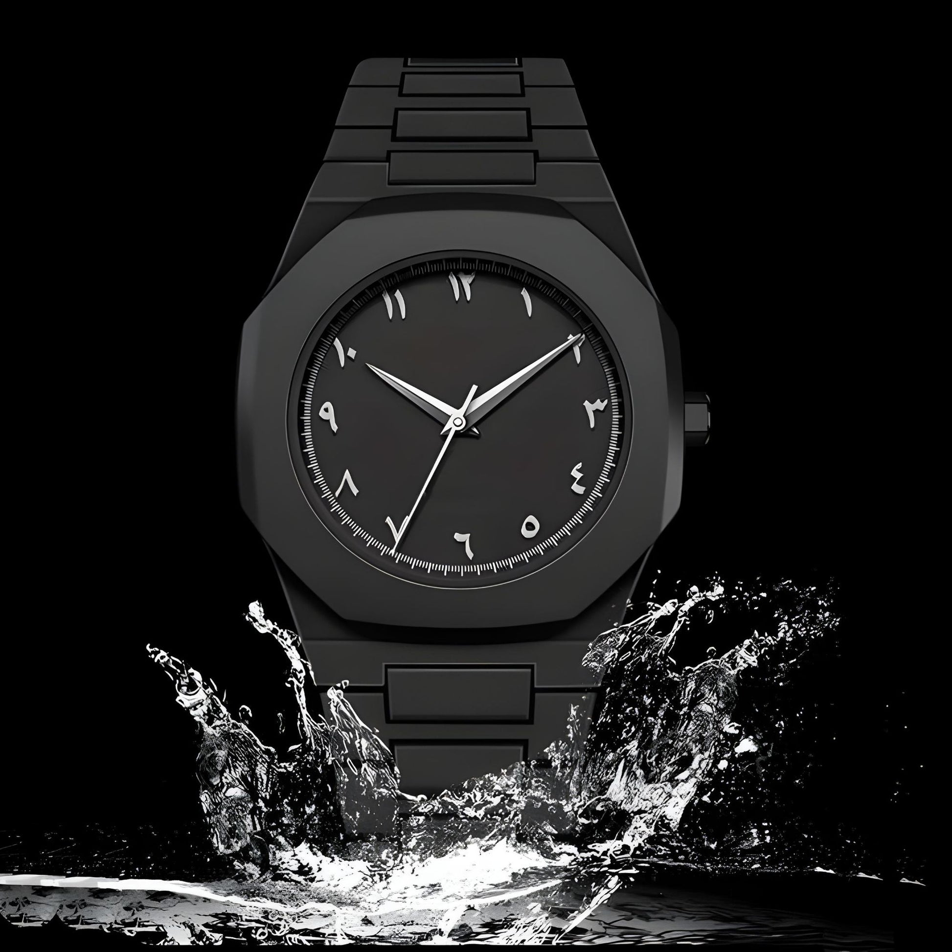 Aura Watch 2025 - Modern Black Arabic Dial | Waterproof Stainless Steel Quartz Men's Watch